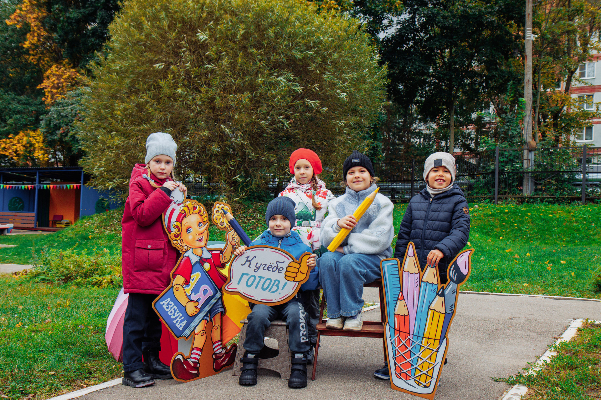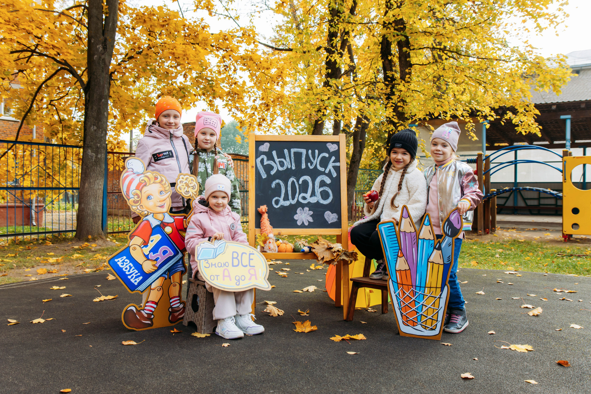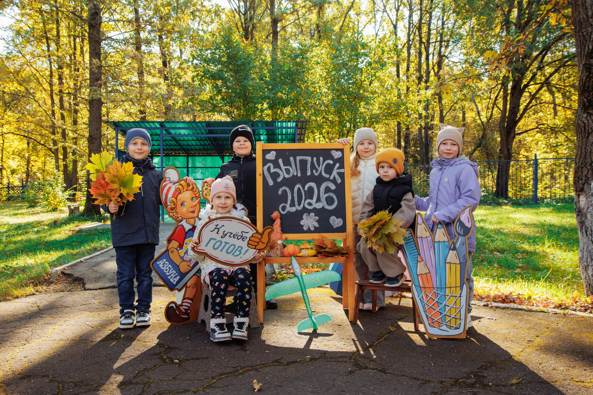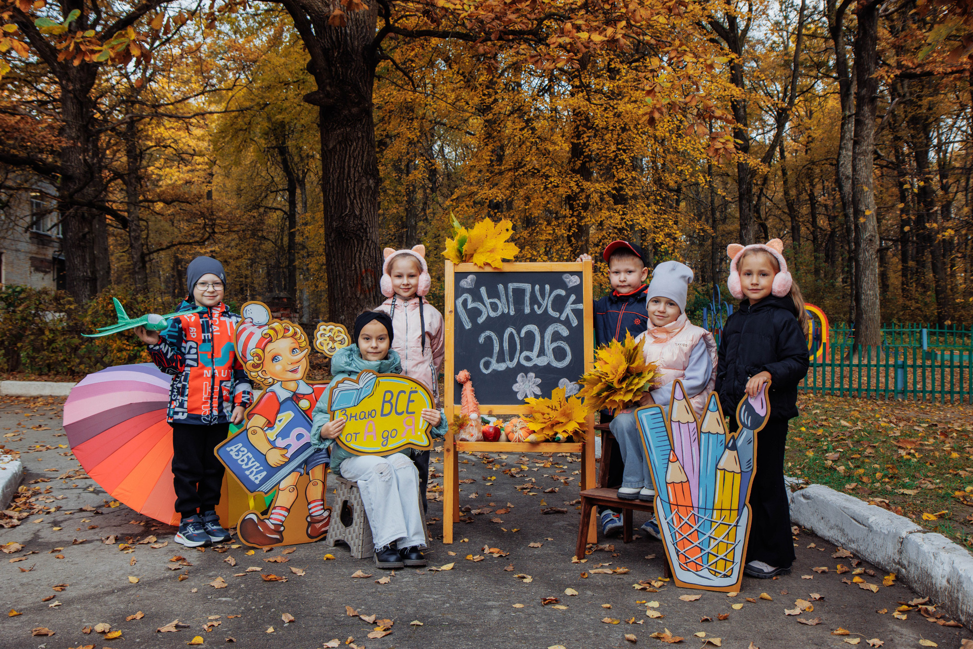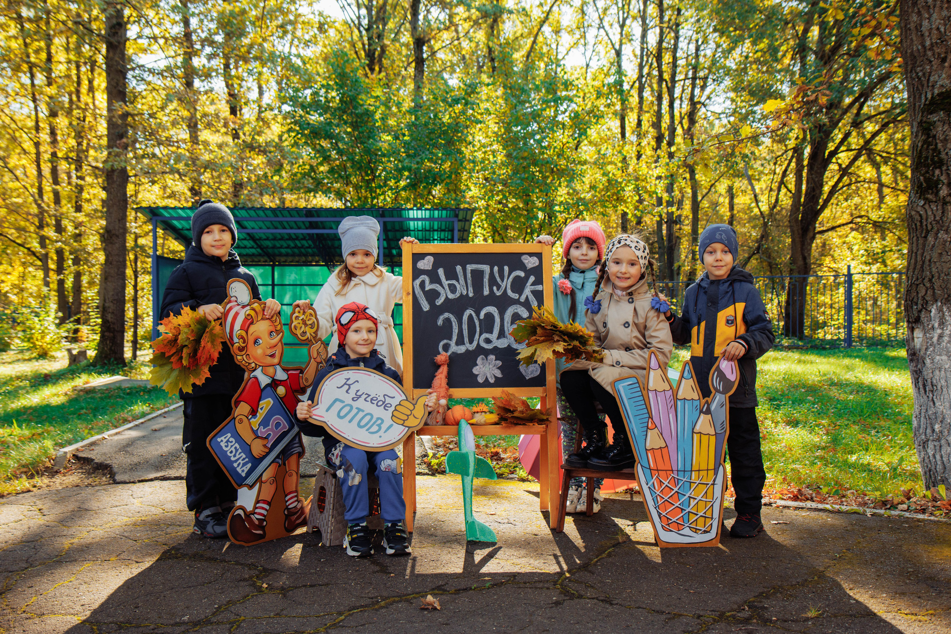 Первоклассник с фотозоной осень