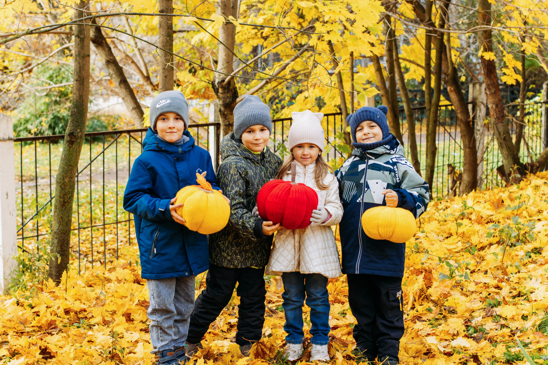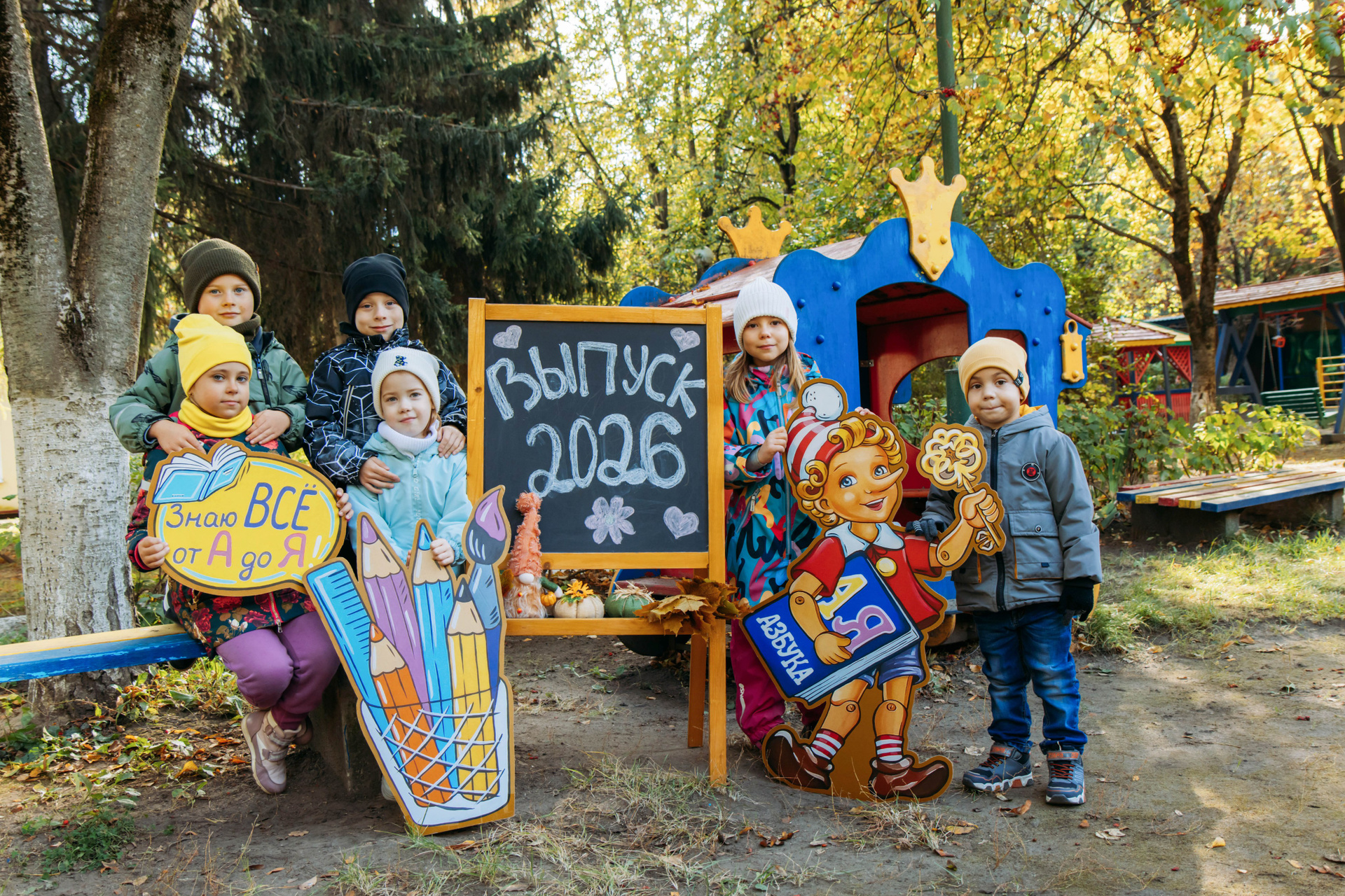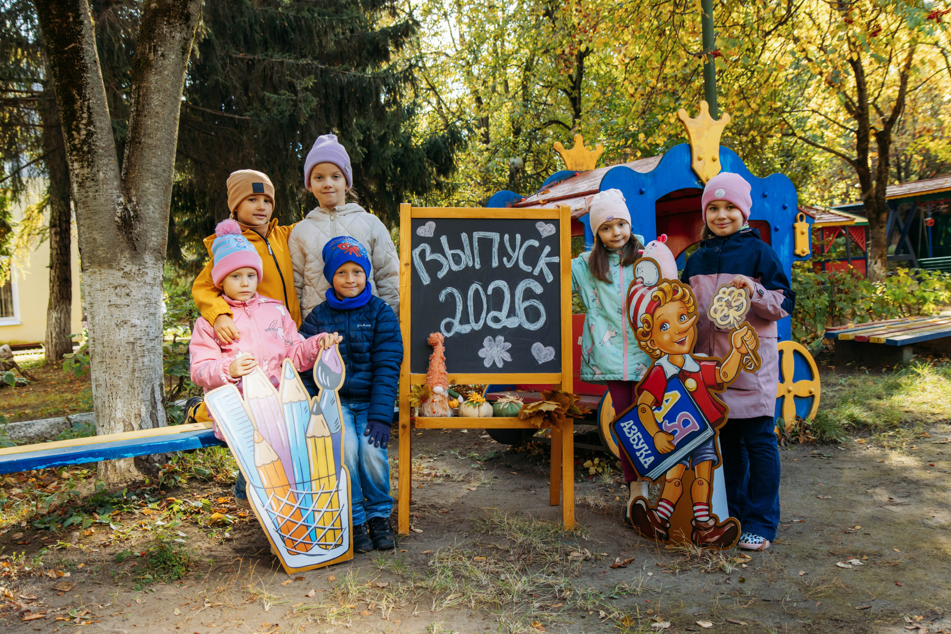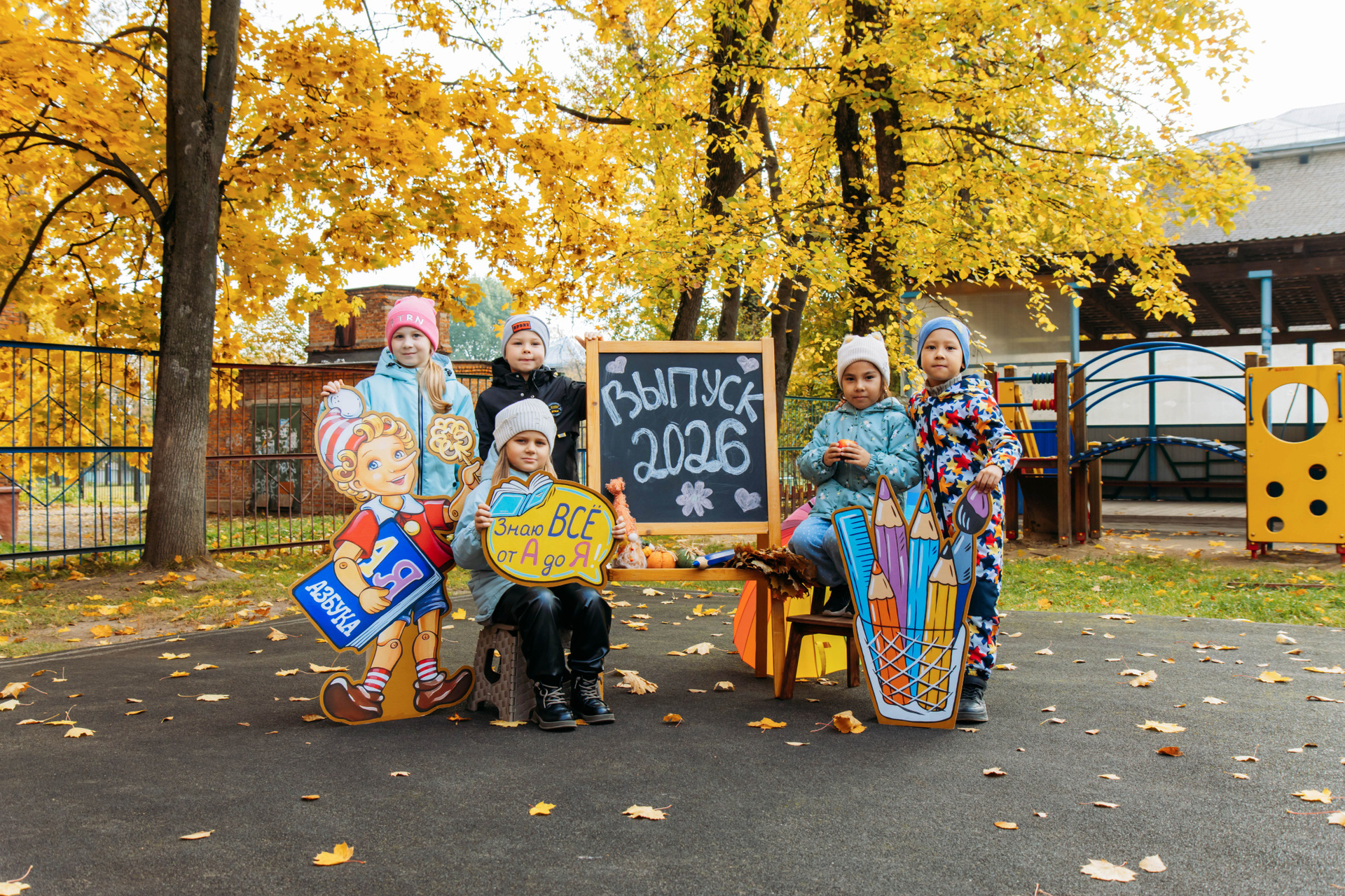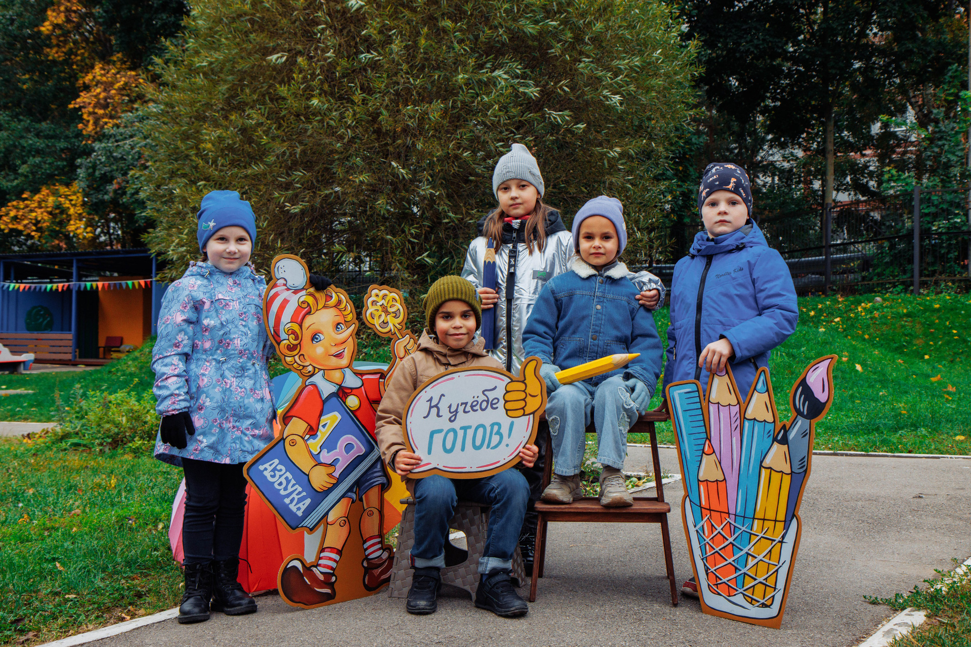 Первоклассник с фотозоной осень
